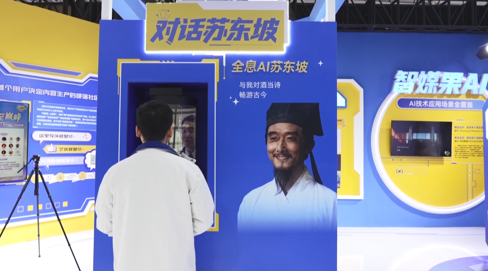 浙江广电集团的Z视介也初次参展,每位参取者都能“变脸”成为数字舞台的配角。博览会还初次引入机械人导览和,